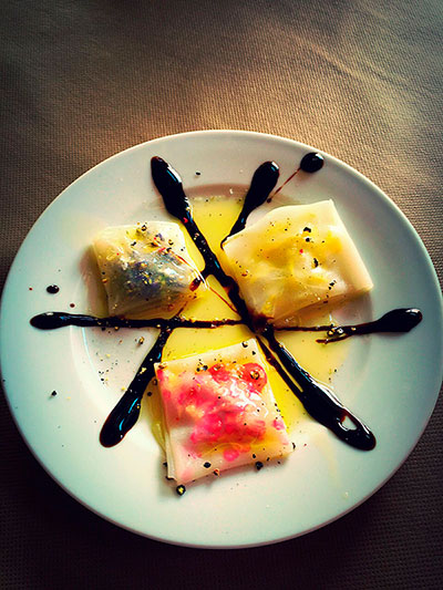 | Per commemorar aquest dia, el restaurant del bosc va crear una tapa especial: Pel·lícula d’arròs amb tres flors: groga, vermella i blava acompanyades d’una vinagreta als tres pebres”